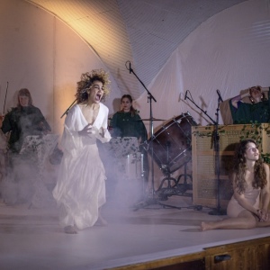 Regie: Wolke Milena Wilke // Gesang/Performance: Fanni Faluvégi, Kanon Adachi, Ondrej Benek, Lovro Skrt, Elizabeth Kim, Georgia Kalogeratou, Sara Zimmermann // Bühnenbild: Valia Lolidou // Kostüme: Magdalena Stippl // Musikalische Leitung: Byron Knutson, Peter Meiser // Fotos: Katinka Schütt